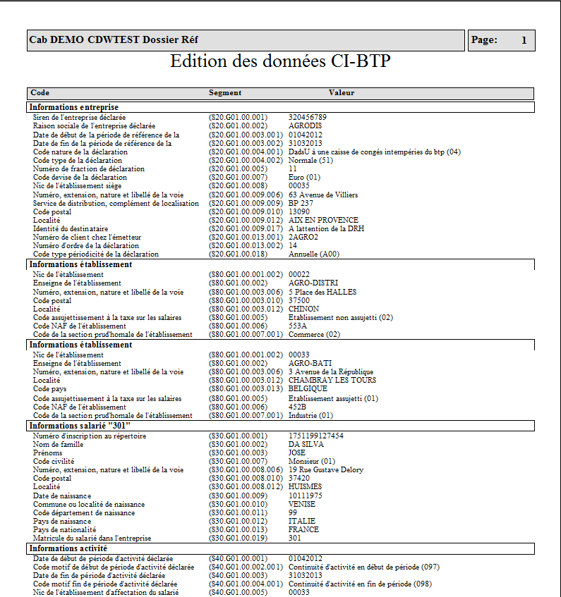 Les pages suivantes récapitulent les données de la DADS-U en effectuant un tri par code salarié :