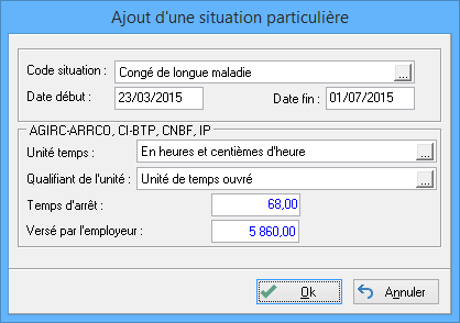 Pour que les évènements puissent être repris, vous devez paramétrer une situation particulière au travers du Calendrier (Gestion des Variables). Ne pas oublier de renseigner le code DADS au niveau de l'évènement paramétré.