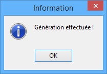 Après avoir cliqué sur le bouton Continuer, la génération du fichier se finalise et le message suivant apparaît :