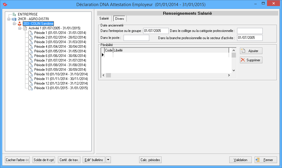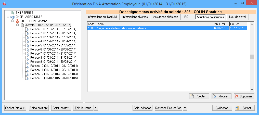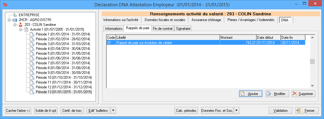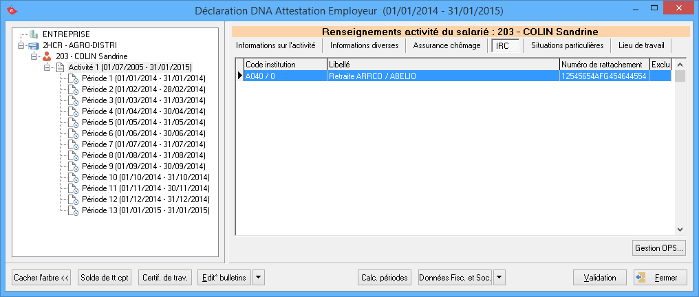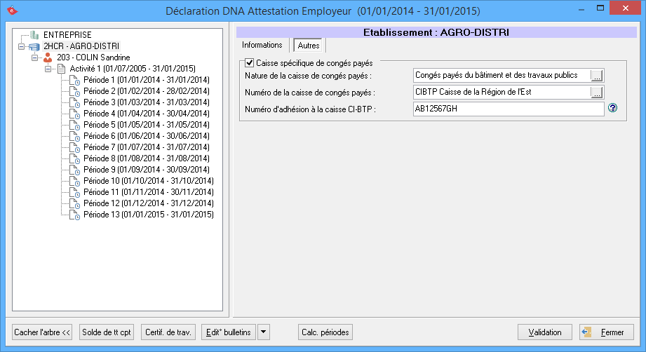 Le programme reprend automatiquement les périodes travaillées jusqu'aux 12 derniers mois trouvés pour l'activité du salarié ou pour toutes activités cumulées trouvées dans l'établissement.