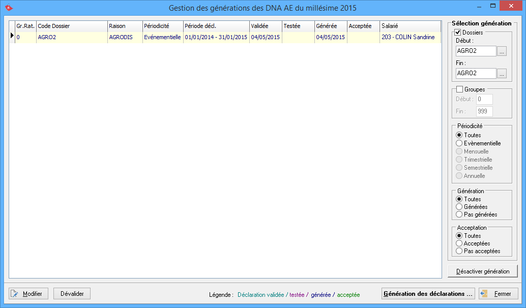 Pour procéder à la génération de la DNA-AE, cliquez sur le bouton Générations des déclarations.