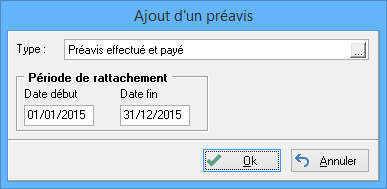 Dans le tableau Réalisation du préavis précisez les modalités de réalisation du préavis du salarié en cliquant sur le bouton Ajouter. La fenêtre suivante apparaît :