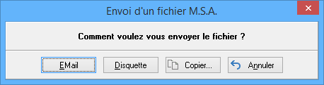 Après avoir refermé la visualisation de l'édition, une fenêtre vous propose de choisir le mode d'envoi du fichier MSA généré.