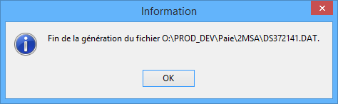 Le message suivant vous informe que le traitement s'est correctement effectué. Cliquez sur le bouton OK pour finir la génération.