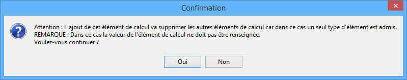 Si vous ajoutez les rubriques comprises entre 91 et 96, qui sont des rubriques d'absence, le message suivant s'affiche sur votre écran. La validation de ce message entraîne la suppression de tous les éléments de calcul récupérés.