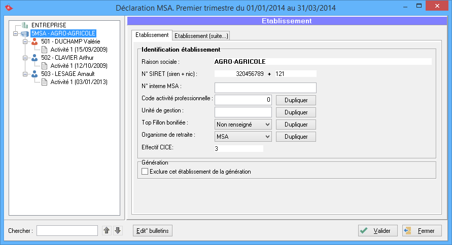 Une fois toutes les informations renseignées, cliquez sur le bouton Valider pour pouvoir par la suite générer le fichier MSA.
